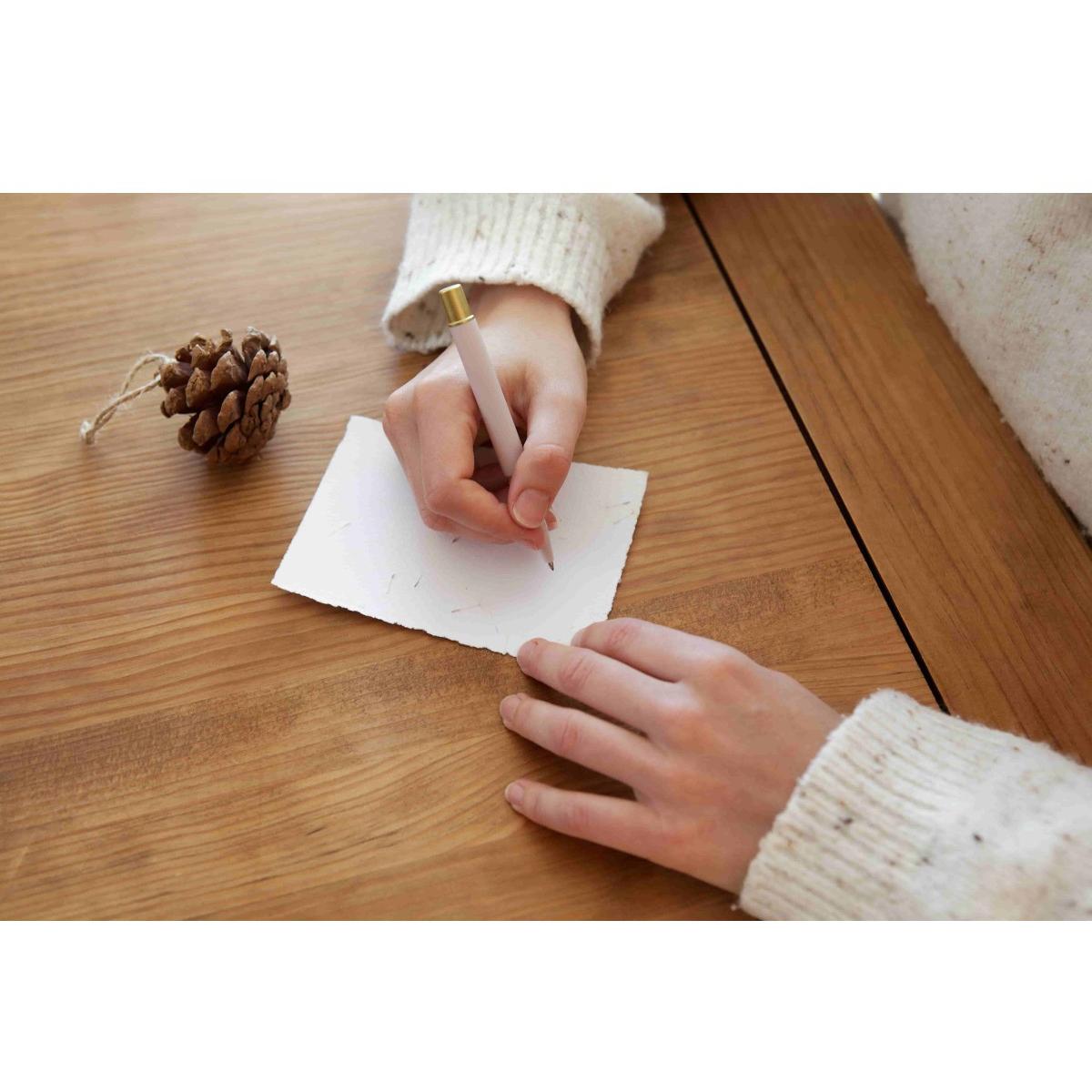 Außerdem ist eine handgefertigte Karte aus Recyclingpapier enthalten, auf der Sie Ihre Widmung schreiben können!