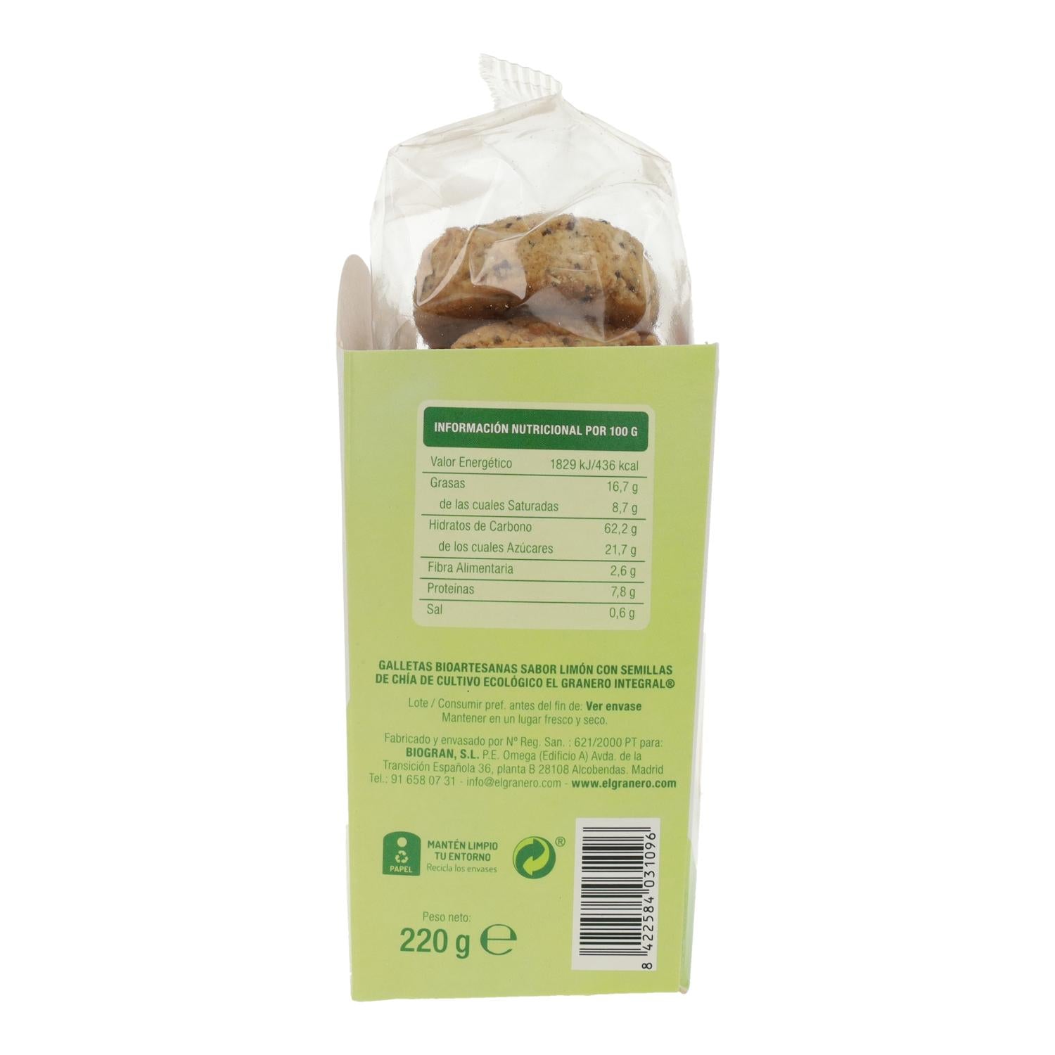 Alle Informationen über "Handgemachte Kekse mit Zitronengeschmack und Bio-Chia El Granero, 220 g"