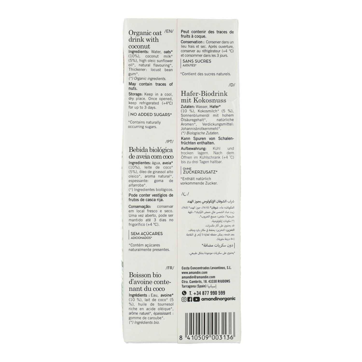 Zutaten : Wasser, Hafer* (10%), Kokosmilch* (5%), Sonnenblumenöl*, natürliches Aroma, Stabilisator: Gellangummi, (*)