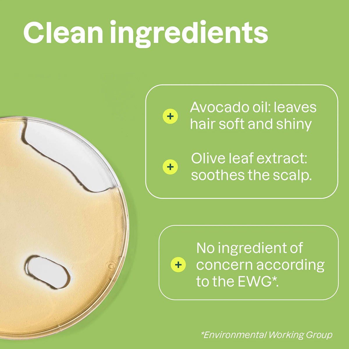 - Formulado con un 99,3 % de ingredientes de origen natural como el aceite de aguacate, conocido por suavizar y dar brillo al cabello