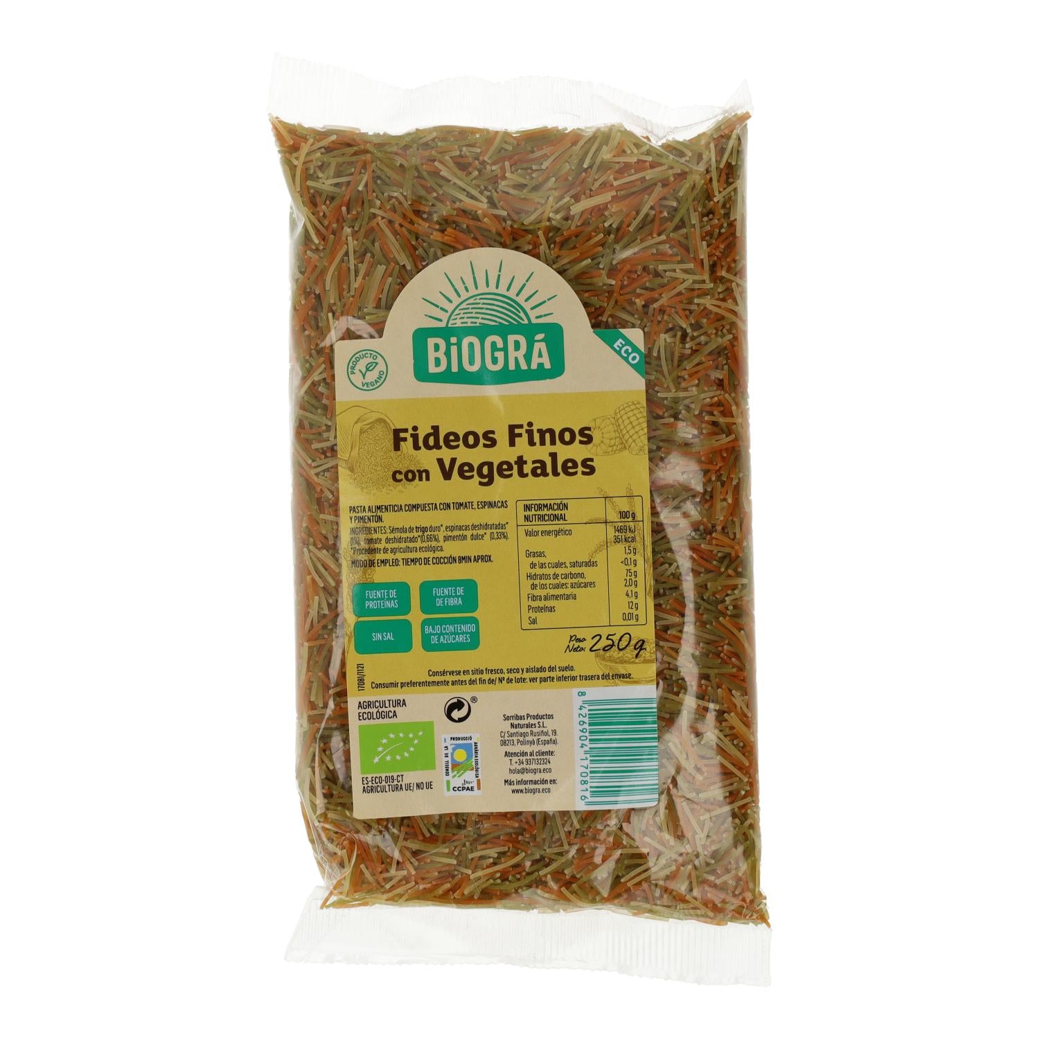 Toutes les informations sur "Fettuccine aux légumes Biográ 250 g"