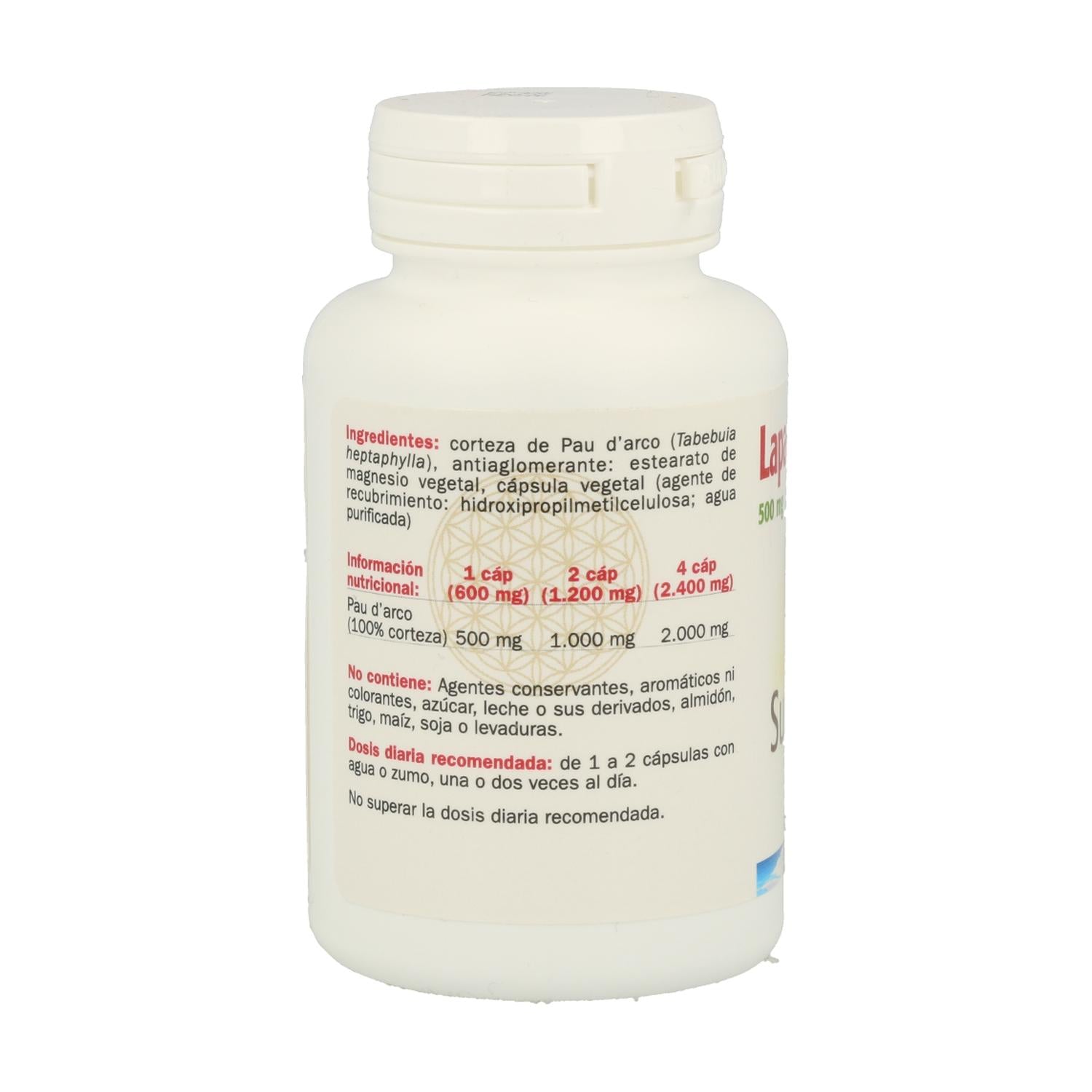 Le Lapacho (Pau d'Arco) 500 mg de Sura Vitasan est un complément alimentaire en gélules, fabriqué à partir de l'écorce du Tabebuia impetiginosa, arbre originaire d'Amérique du Sud. Traditionnellement utilisé pour ses propriétés immunostimulantes et détoxifiantes, ce produit est conçu pour soutenir le système immunitaire, lutter contre les infections et favoriser le bien-être général. Il ne s'agit pas d'un produit vaisselle ou nettoyant pour ustensiles, mais d'un complément naturel pour le soin de l'organisme.