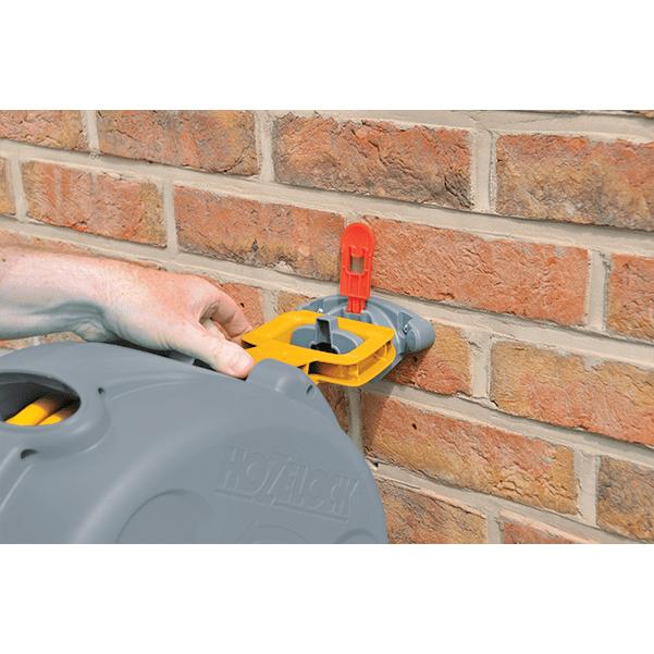 El carrete compacto con funcionalidad 2 en 1: puede instalarse en la pared o colocarse en el suelo.