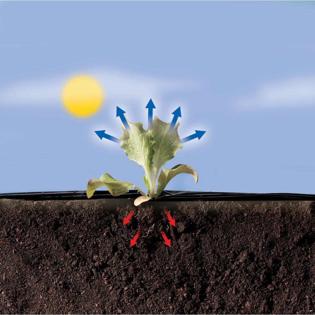 • Favorece el crecimiento del cultivo gracias al efecto de regulación térmica: se recalienta durante el día y limita el enfriamiento del suelo durante la noche.