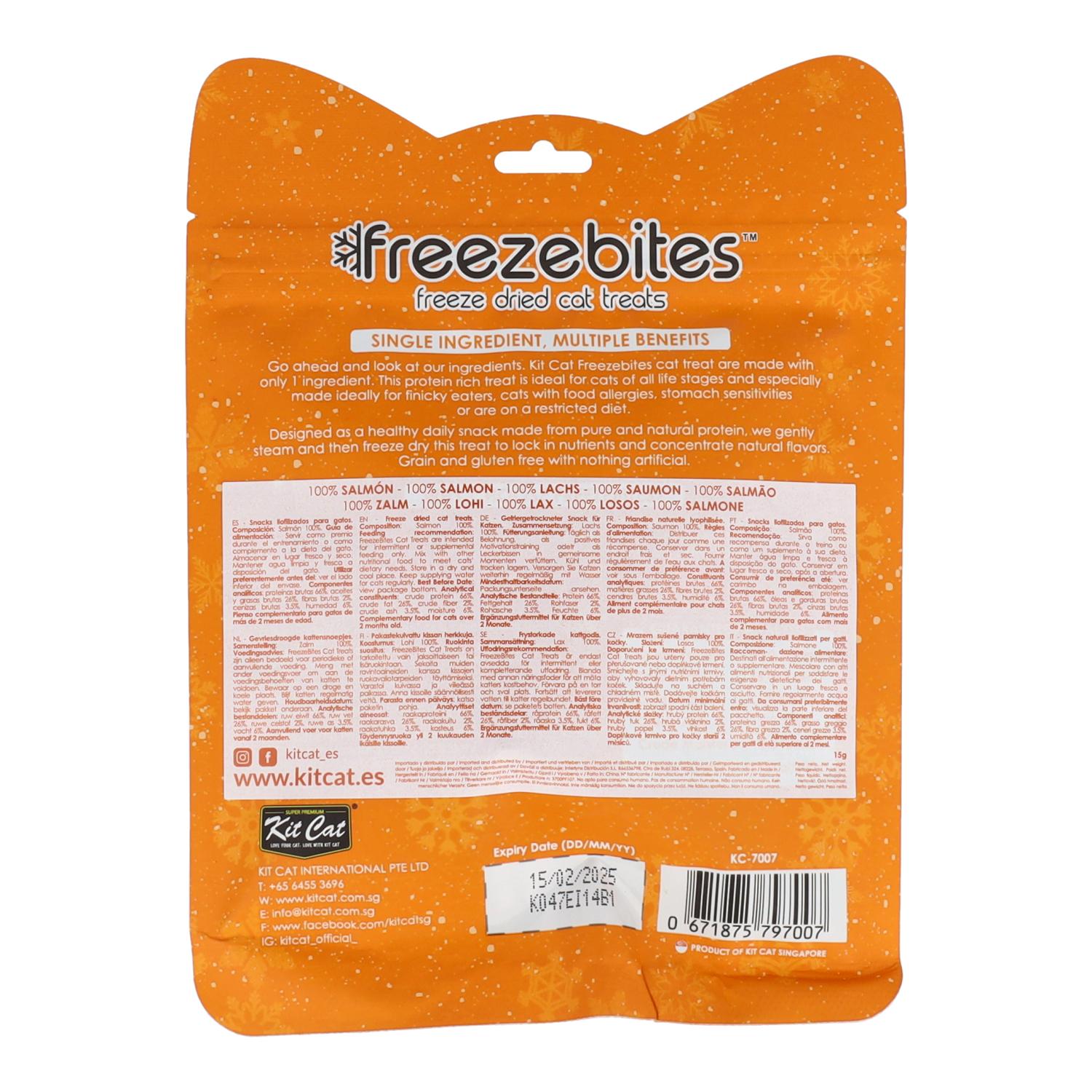 All information on "Kit Cat FreezeBites - Salmon 15 g Natural freeze-dried snack for cats"