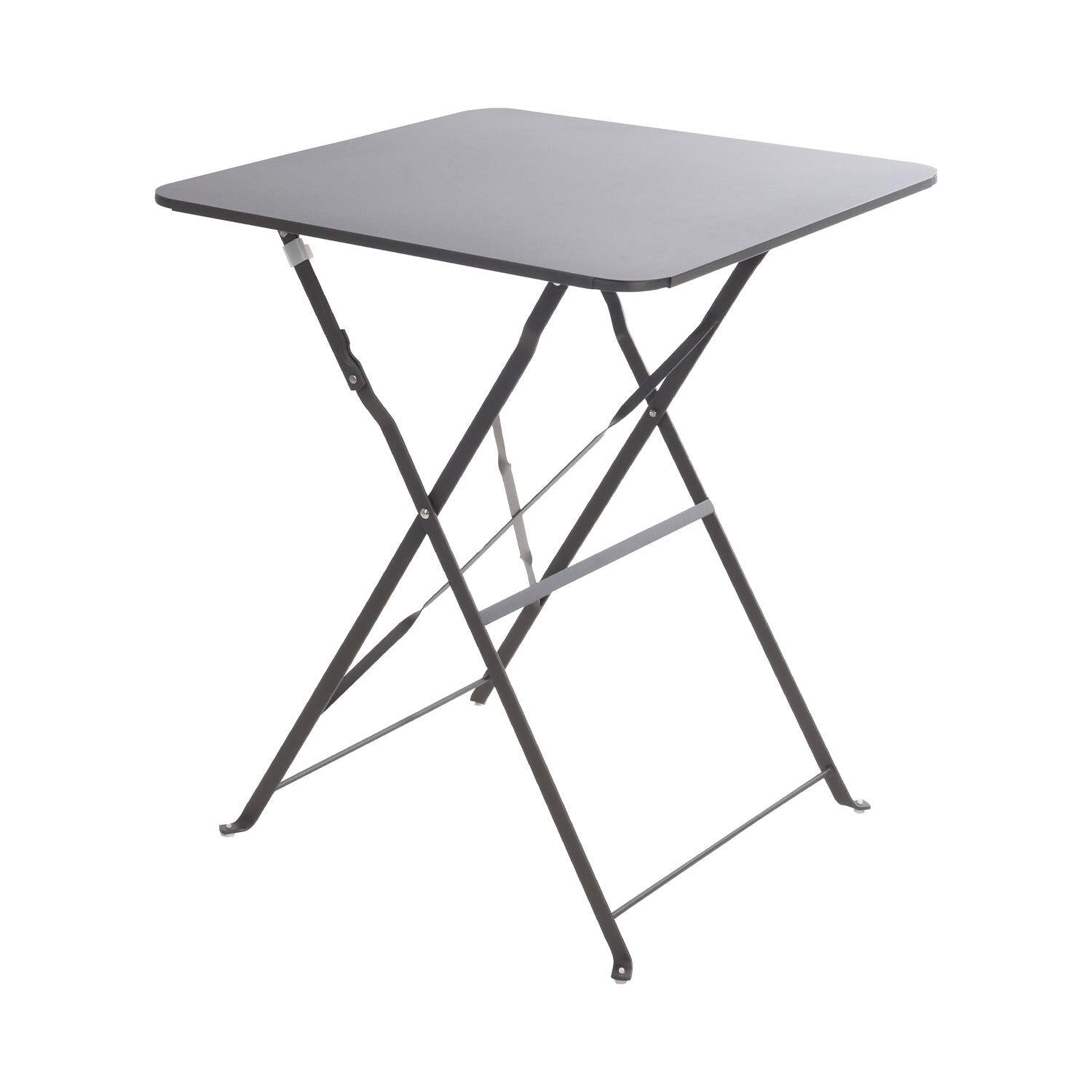 Consistente , ligera y fácil de almacenar, esta mesa de jardín plegable de metal gris antracita acabado en mate , se adapta a cualquier espacio.