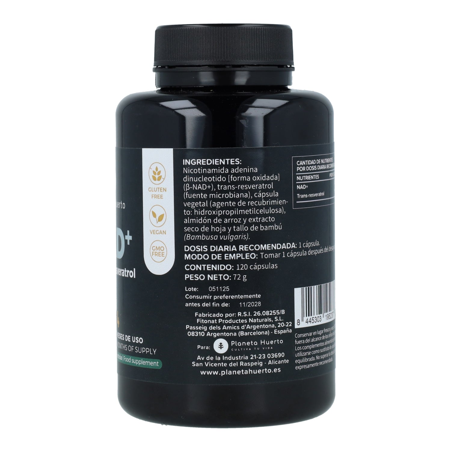 All information on "NAD+ Transresveratrol Planeta Huerto 120 capsules"