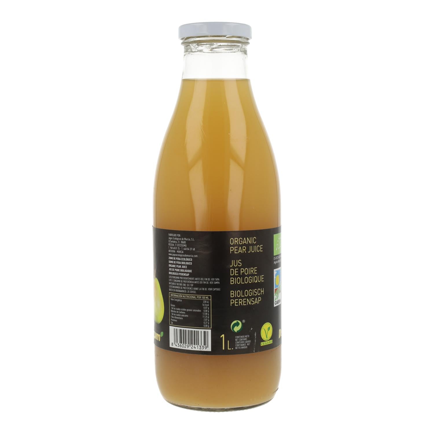 Zumo de pera partir de puré y concentrado de pera ecológica.