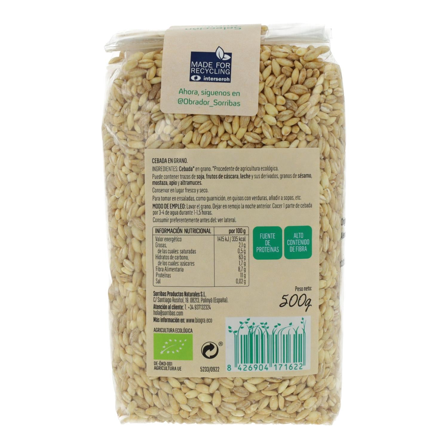 La Cebada en Grano BIO de Biográ es un cereal integral de cultivo ecológico, ideal para quienes buscan incorporar alimentos naturales y nutritivos en su dieta. Su proceso de cultivo sin pesticidas ni fertilizantes químicos garantiza un producto libre de aditivos y conservantes. La cebada es una excelente fuente de fibra, proteínas y vitaminas del complejo B, además de tener un bajo índice glucémico, lo que significa que es un carbohidrato de liberación lenta que ayuda a mantener los niveles de azúcar en la sangre estables y te mantiene satisfecho por más tiempo. Es perfecta para preparar sopas, guisos, ensaladas o como acompañamiento de platos principales.