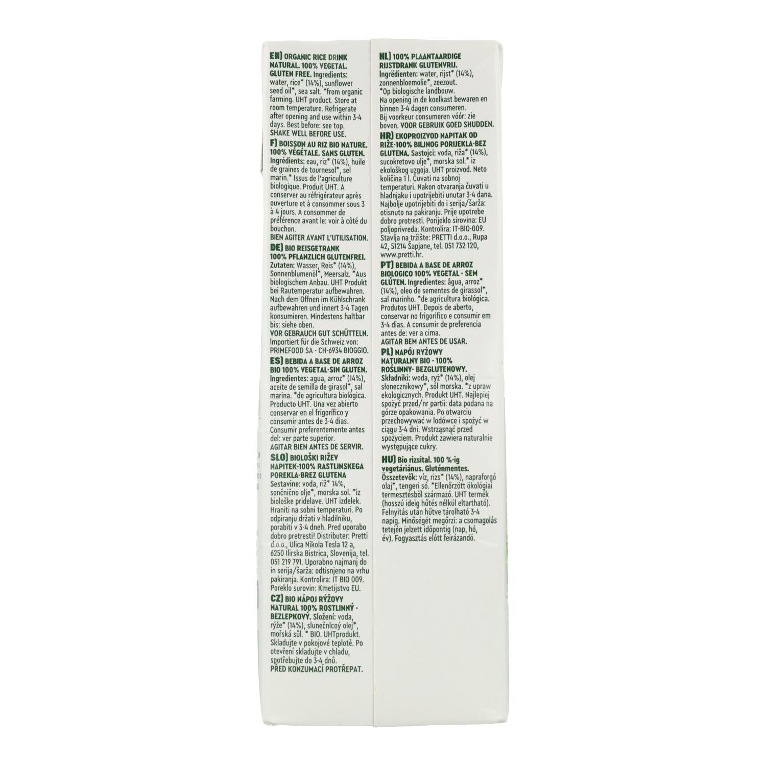 Bebida 100% vegetal elaborada a base de arroz procedente de cultivo biológico.