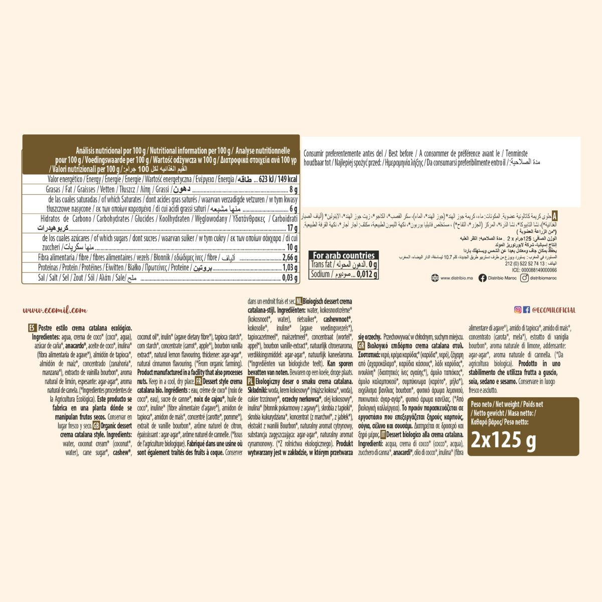 All information om "Postre Estilo Crema Catalana Bio Ecomil 2 uds de 125 g"