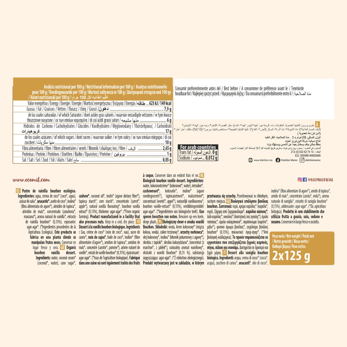 All information om "Postre Vainilla Dream Bio Ecomil 2 uds de 125 g"