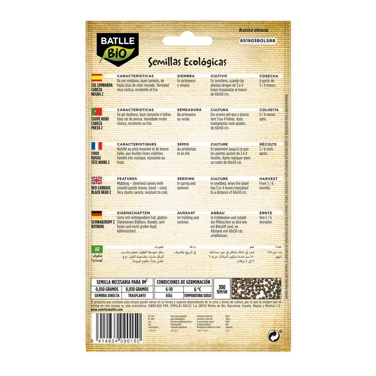 All information om "Semillas de de Col lombarda cabeza negra 2 ecológicas Batlle"